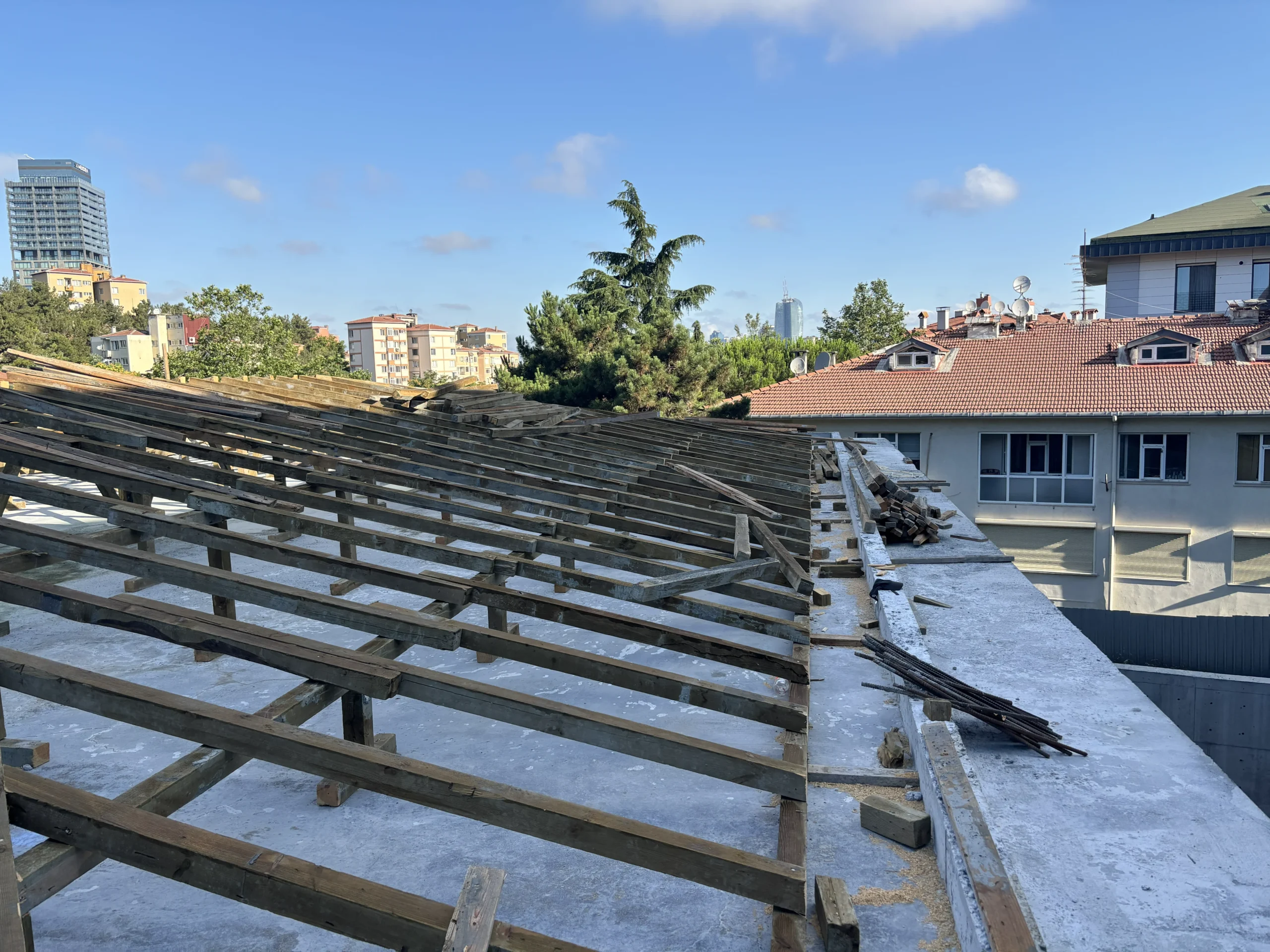 4. Makas/Karkas Kurulumu: Makaslar (asma çatılarda) veya dikmeler ve aşıklar (oturtma çatılarda) yerine monte edilir.