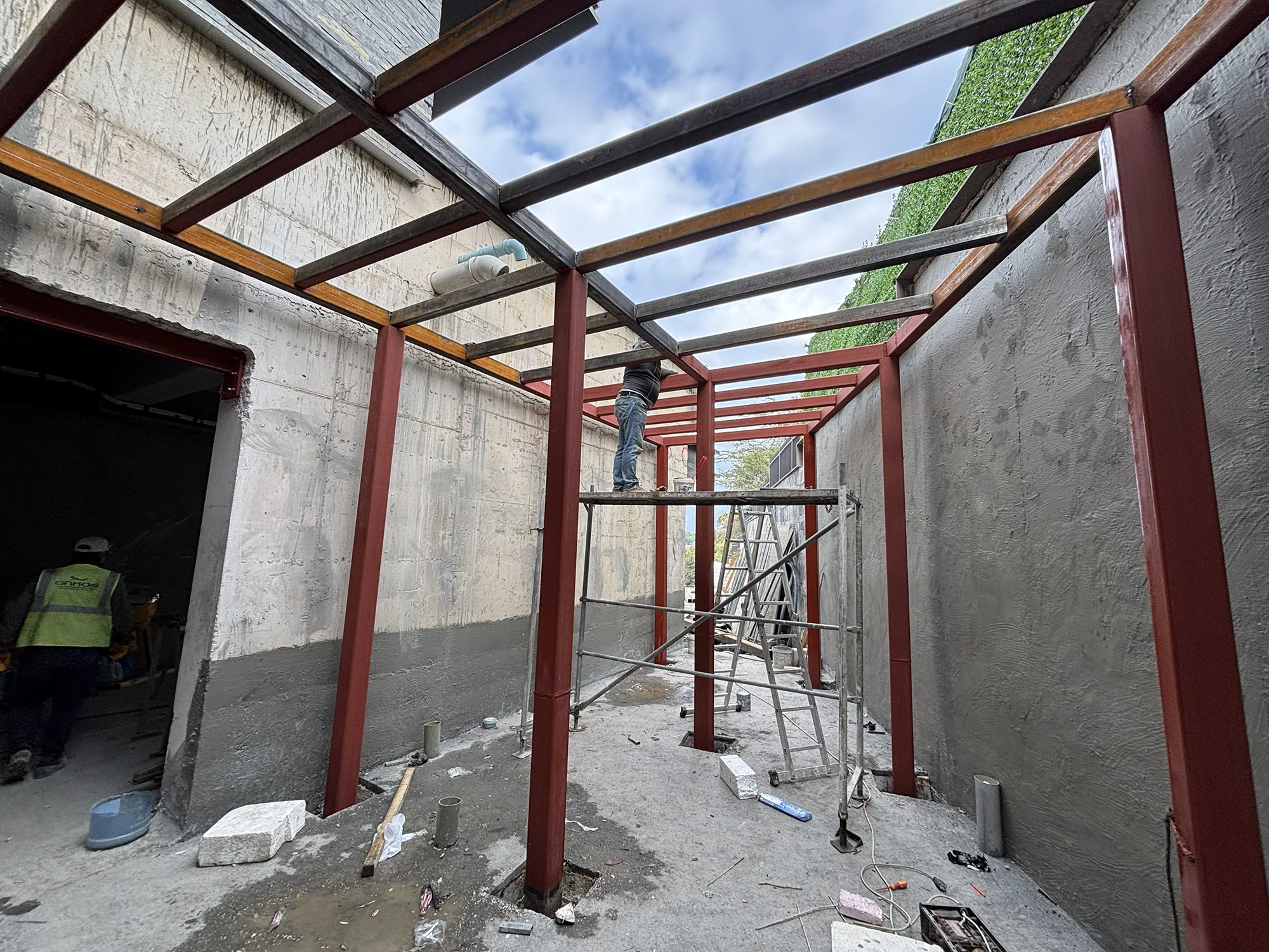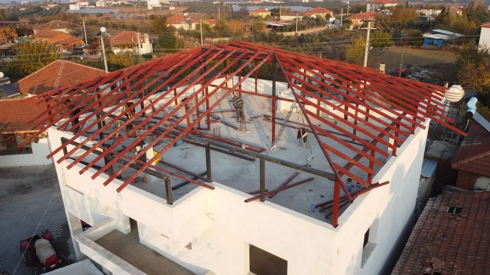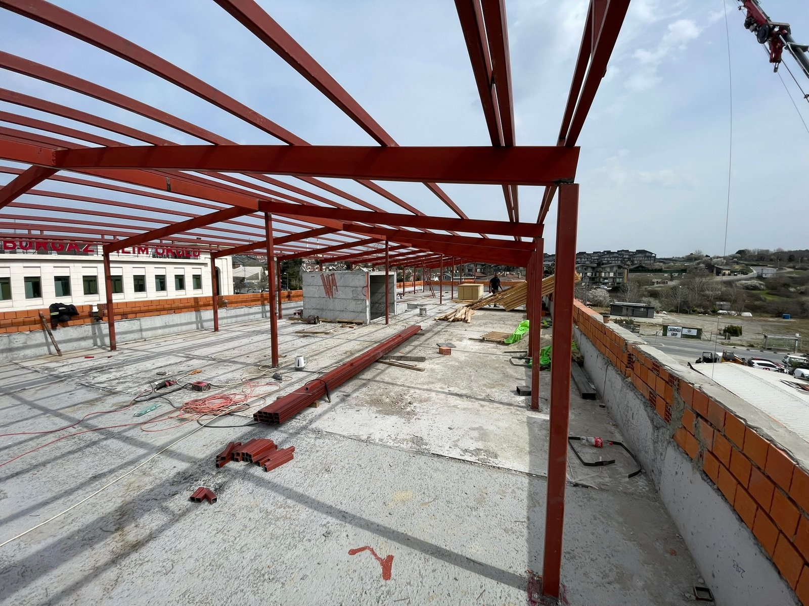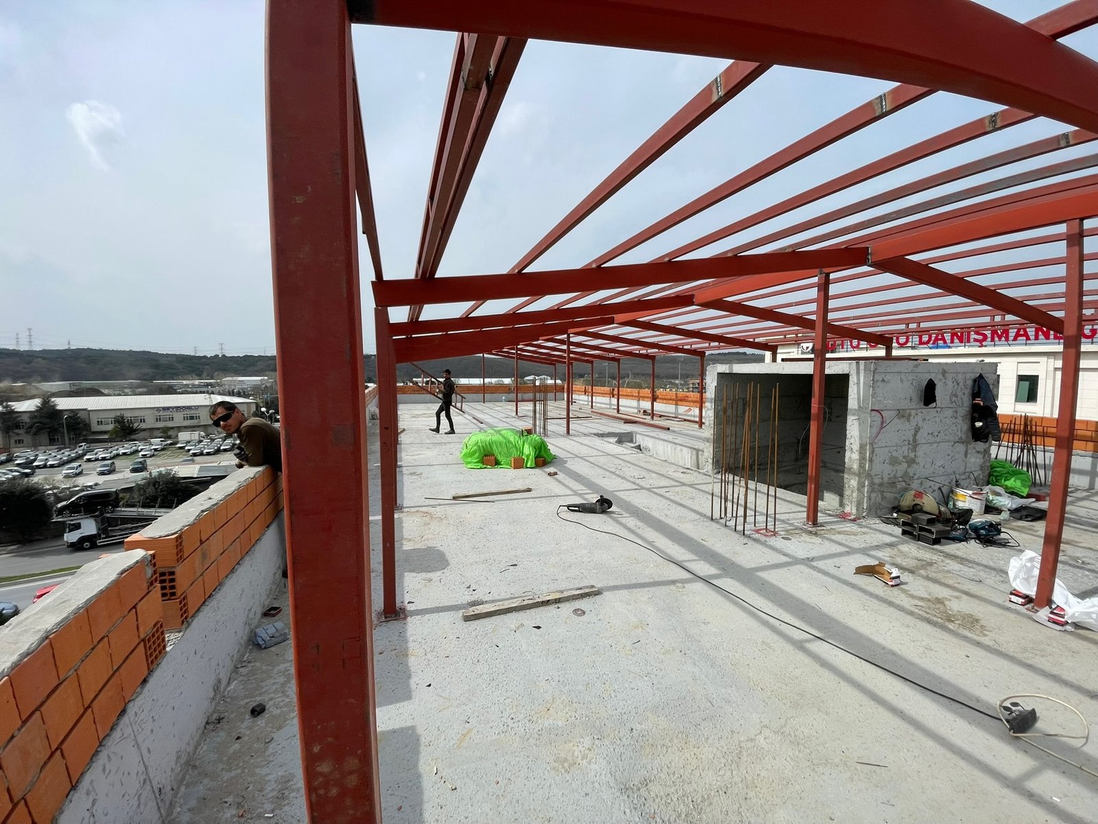 Ankraj ve Sabitleme: Çatı makaslarının ana taşıyıcı kolonlara veya betonarme yapıya bağlanacağı noktalara öncelikle ankraj elemanları (bulonlar) doğru pozisyonda ve sağlam bir şekilde sabitlenir.